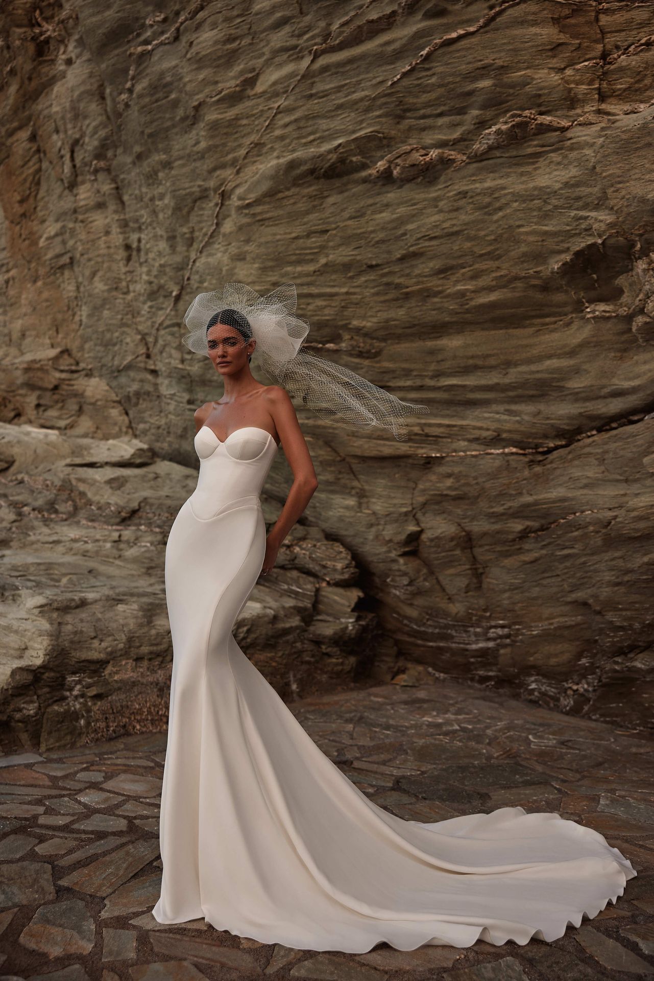Glamorous birdcage veil crafted from fine polka dot mesh fabric. Designed to add depth and a modern touch to the Mirela bridal ensemble.