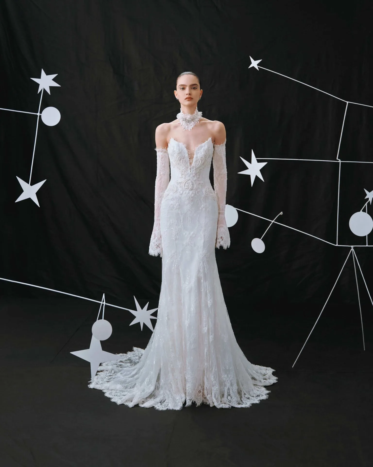 Combina a la perfección con el vestido Lyxora y la cola Lyxora o con el vestido Bellarosa.