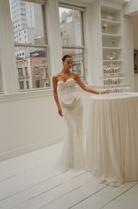 La Maison Rose collection captures the soft echo of bygone romance and reimagines it for today’s bride. Voluminous 3D florals and delicate rosettes bloom across gowns, resulting in a collection that doesn’t just dress the bride, but lets her blossom.