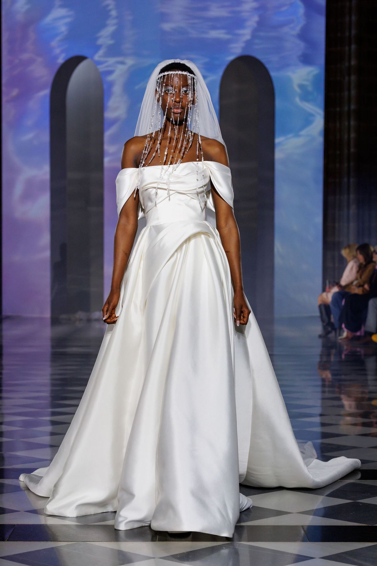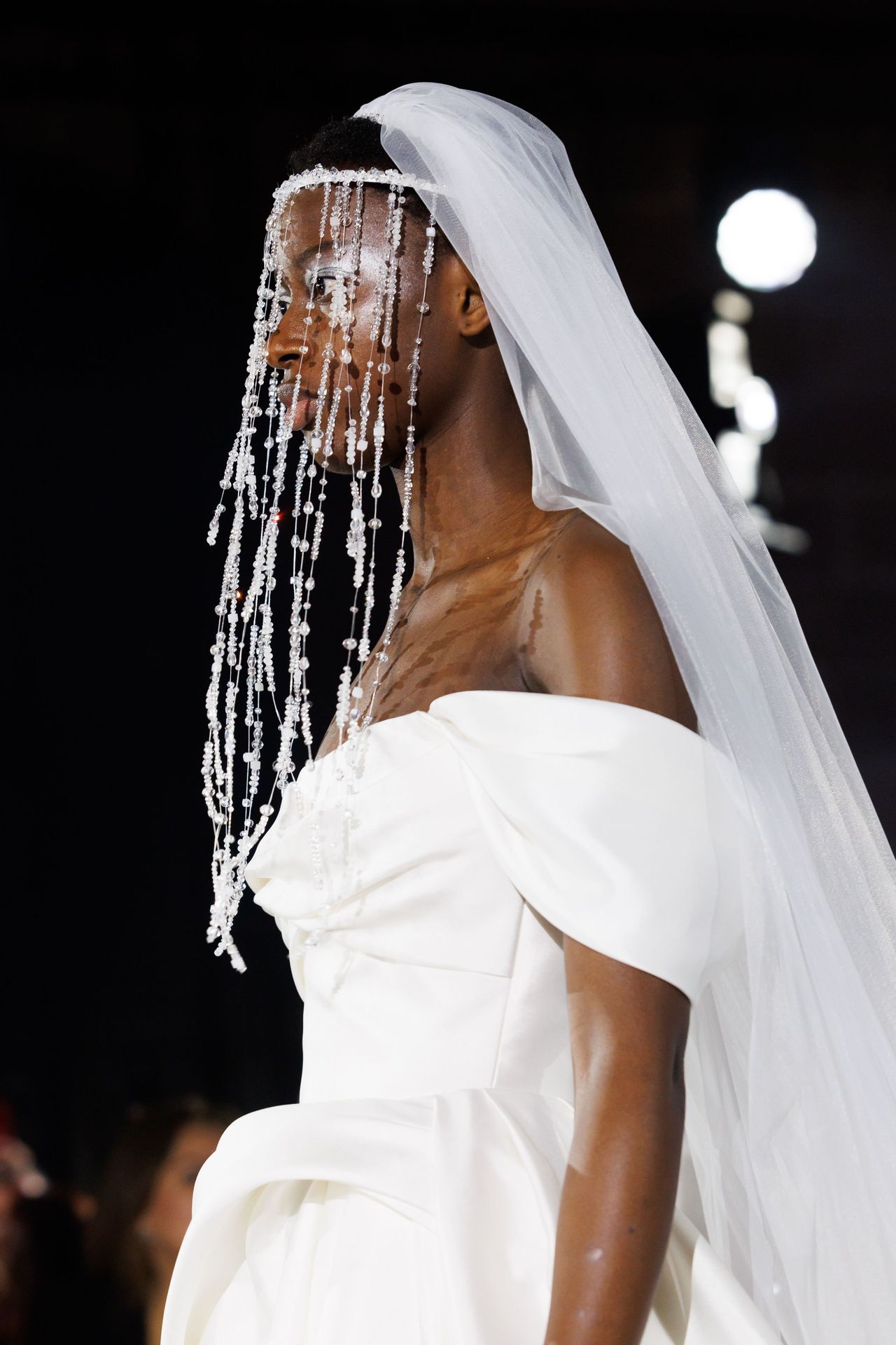 Elegancka ślubna opaska do włosów z delikatnymi koralikami i kaskadowymi pasmami pereł i kryształów, tworzącymi romantyczny i eteryczny wygląd. Doda blasku i wdzięku, pięknie uzupełniając ślubną fryzurę.